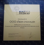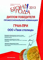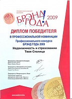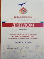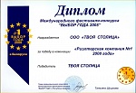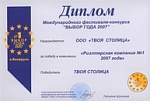 Диплом победителя международного фестиваля конкурса "Выбор года": "ТВОЯ СТОЛИЦА" - риэлтерская компания №1