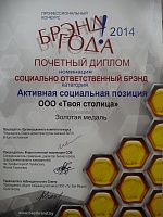 Диплом победителя - Золотая медаль в номинации "Социально ответственный брэнд",