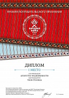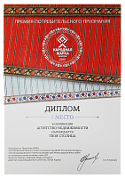 Диплом победителя - 1 место в номинации "Агентство недвижимости"