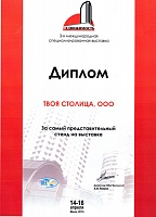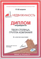 "ТВОЯ СТОЛИЦА" получила диплом "За активное участие в международной специализированной выставке 2010 "Недвижимость и инвестиции""