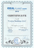По результатам мнений потребителей компанию признали Лидером в номинации "IDEAL SERVICE Award 2012" в категории "Лучшая риэлтерская компания"