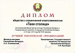 Диплом ООО " Твоя столица" от министерства Юстиции РБ по итогам работы за 2008 год. Работа по комплексному оказанию услуг, правовому информированию населения в СМИ, а также за значительное количество совершенных сделок