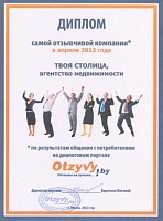 Совместным постановлением Министерства юстиции РБ и Государственного комитета по имуществу РБ ООО "Твоя столица" многократно признана лучшей риэлтерской организацией