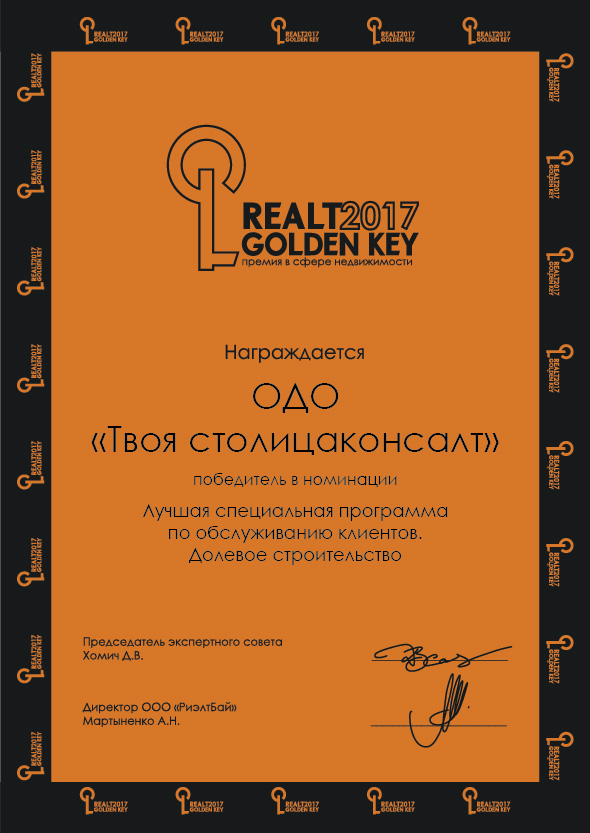 - «Лучшая риэлтерская организация». Министерство юстиции РБ и Государственный комитет по имуществу признал нашу работу полностью соответствующей стандартам;