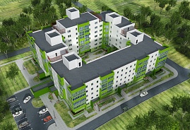 Новый жилой комплекс в Советском районе состоит из двух сблокированных многоквартирных жилых домов с общим двором и подземным паркингом на 82 машино-места..