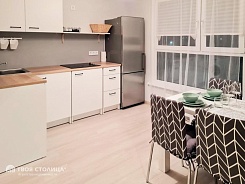 Новая квартира с ремонтом и французским остеклением. Отделка квартиры в приятных светлых тонах, на полу ламинат, стены оклеены обоями. Установлены алюминиевые радиаторы с термо-регулировкой тепла. В санузлах выполнен ремонт с использованием качественных материалов, установлена сантехника.