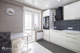 В оконных проемах стеклопакеты ПВХ. Лоджия застеклена стеклопакетом. Утеплена, оборудованы места для хранения. Напольное покрытие ламинат в комнате и прихожей, в кухне и санузле плитка.
