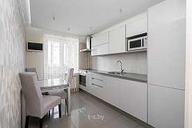 В оконных проемах установлены стеклопакеты ПВХ, в том числе и на лоджии. Напольное покрытие ламинат. Межкомнатные двери МДФ. В кухне- кухонная мебель, электроплита, вытяжка. Ванная комната и туалет облицованы кафелем. Оборудован пол с подогревом.