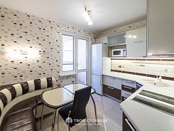 Встроенная кухня, варочная панель, духовой шкаф, вытяжка, холодильник, печь СВЧ.