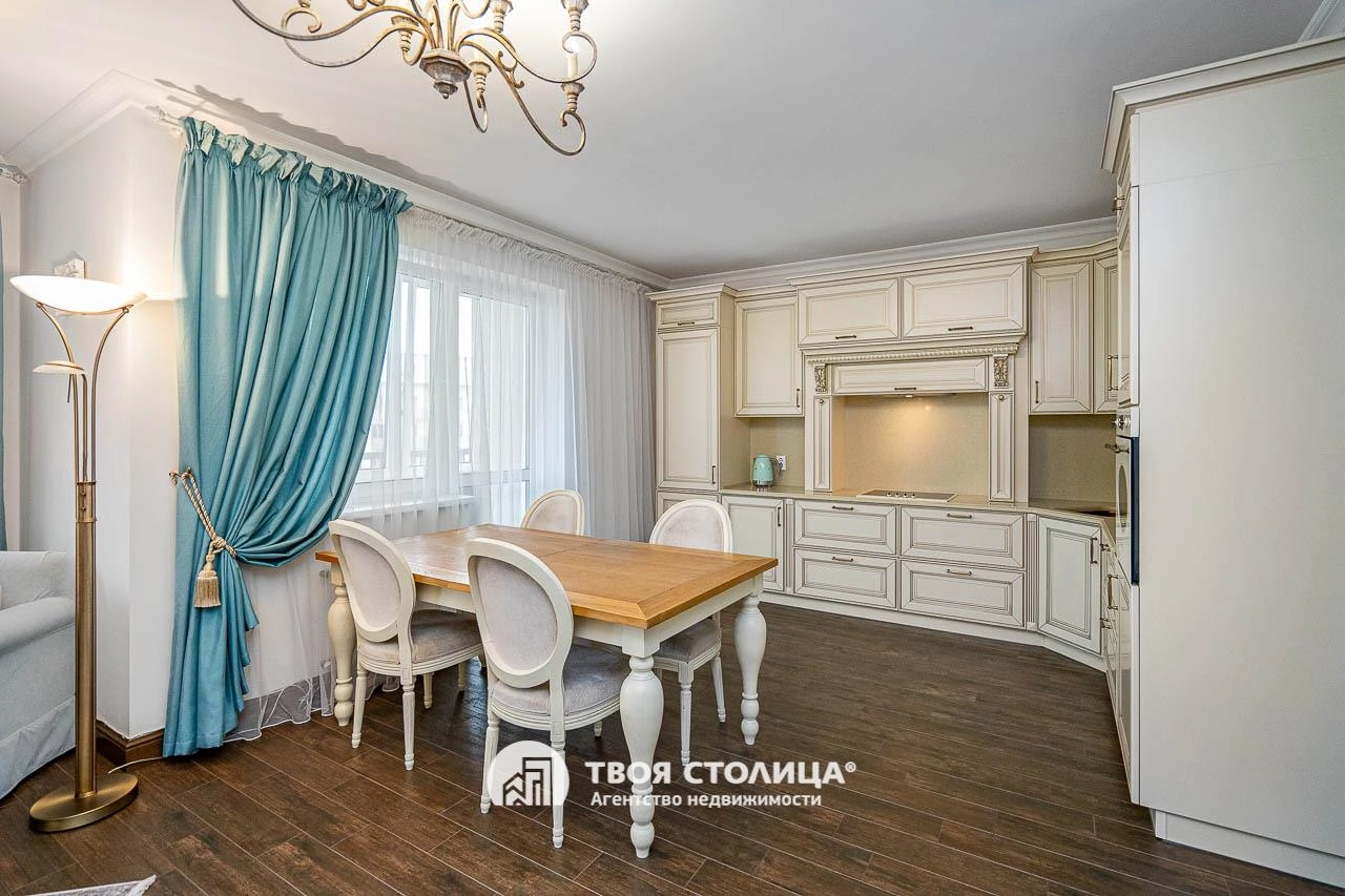 Квартира полностью укомплектована мебелью и техникой от лучших мировых производителей. Мягкая мебель от компании FURMAN. Встроенная кухня KUCHENBERG оборудована техникой фирмы SMEG. Продуманная система хранения в гардеробной. Просторная ванная комната с душевой. Окна квартиры выходят на восточную сторону, обеспечивая Вам лучи восходящего солнца. Высота помещения 2,7 м. Общая площадь по СНБ 56,2 кв.м. Общая площадь 53,3 кв.м. Жилая площадь 24,3 кв.м.