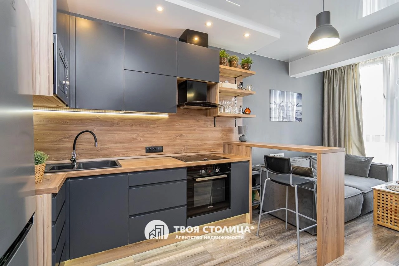 Стильный дизайн, отделка качественными современными материалами. Квартира полностью укомплектована бытовой техникой и мебелью.