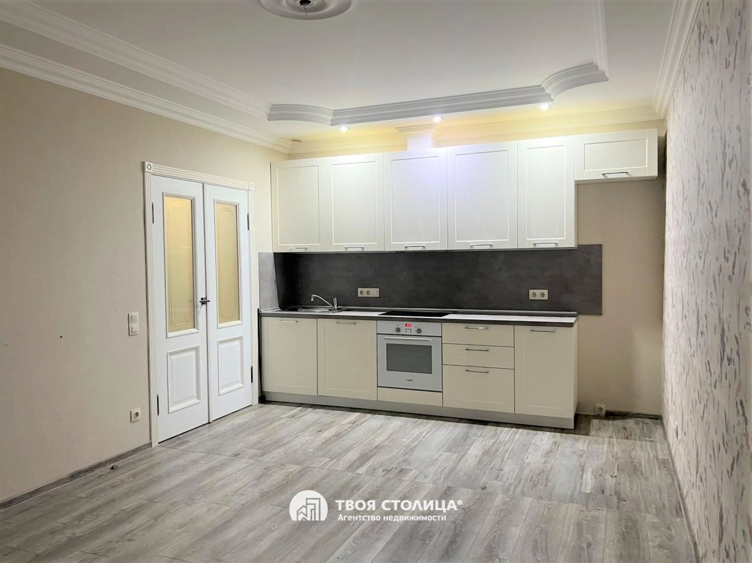 Квартира с ремонтом готова к проживанию. В окнах установлены стеклопакеты с профилем из ПВХ, лоджия с кухни застеклена. На полу ламинат и итальянская кафельная плитка (в санузле). Установлена кухня с индукционной варочной панелью, духовым шкафом и вытяжкой.. Кухня 20.4 кв. метра. В санузле установлена необходимая сантехническая мебель: подвесной унитаз с инсталляцией, душевая кабина и ванна, умывальник с подвесной тумбой. В гостиной зоне вместительный шкаф-купе. Межкомнатные двери - массив, входная - металлическая.