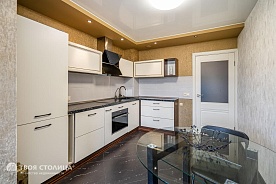 Предлагаемая квартира готова к проживанию. В оконных проёмах установлены стеклопакеты с профилем из ПВХ, в том числе остекление лоджии. Комбинированные потолки с точечными и подвесными осветительными элементами. Напольное покрытие: ламинат, плитка. Санузел изнутри облицован кафельной плиткой актуального дизайна, установлена мебель для ванной комнаты, сантехническая посуда и оборудование. Встроенная кухня с техникой: духовой шкаф, варочная панель, вытяжка, холодильник. Оборудовано множество мест хранения в том числе шкаф-купе. Межкомнатные двери из МДФ, входная металлическая. Подключен домофон, приборы учёта, оптоволоконная связь.