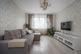 Два вместительных шкафа-купе в комнатах. Напольное покрытие в комнатах - ламинат, в прихожей и кухне - линолеум.