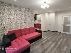 Квартира полностью готова для проживания. Сделан качественный ремонт в котором никто не жил. Установлены входная металлическая дверь, встроенный шкаф-купе в прихожей. Межкомнатные двери МДФ. На полу в комнате ламинат, в коридоре и в кухне - плитка. Встроенная кухня с бытовой техникой. Столовая группа. В туалете и ванной плитка, мебель для ванной. Лоджия застеклена распашными стеклопакетами. В подъезде два лифта.