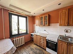 В оконных проемах деревянные стеклопакеты. Входная металлическая дверь, межкомнатные двери массив. Кухонная мебель. Напольное покрытие - доска.