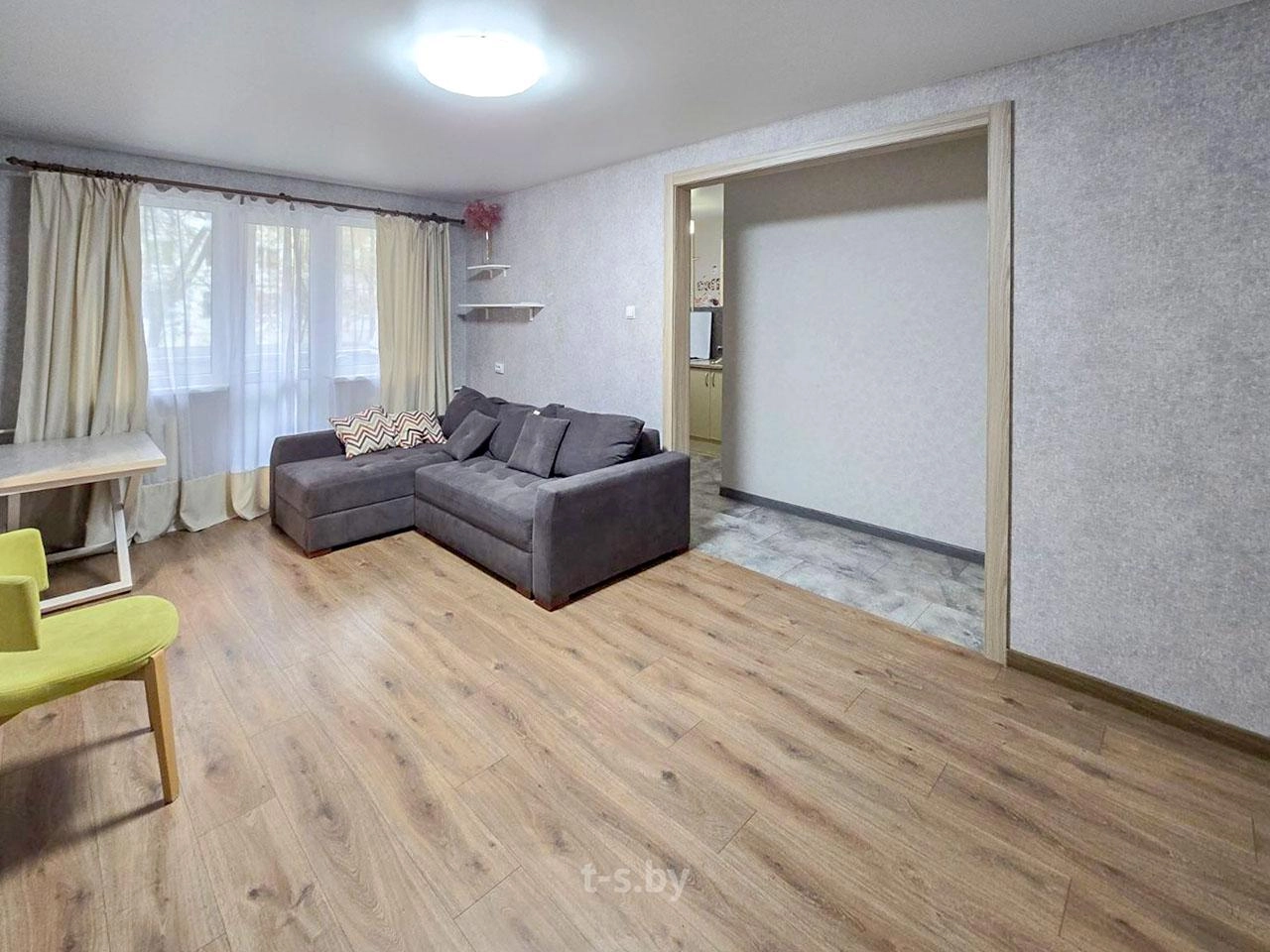 Стеклопакеты ПВХ. Балкон остеклен алюминиевой раздвижной рамой. Ламинат, плитка в санузле. Металлическая входная дверь.