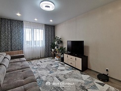 В квартире установлена входная металлическая дверь, межкомнатные двери МДФ. В оконных проёмах стеклопакеты с профилем из ПВХ, в том числе остекление лоджии. напольное покрытие - линолеум, плитка, электроподогрев пола. Натяжные потолки с подвесными и встроенными осветительными приборами. В коридоре вместительный встроенный шкаф.