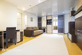 Четвёртый этаж восьмиэтажного кирпичного дома. Две застеклённых лоджии. Стеклопакеты. Полы- паркет, пробка, плитка. Импортная сантехника. Встроенная кухня с техникой. Шкаф-купе. Металлическая входная дверь. Домофон.