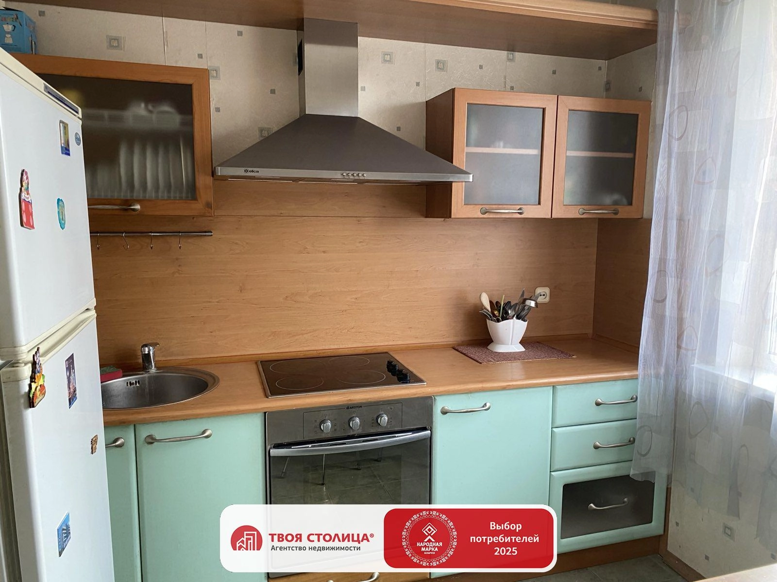Кухня оборудована комплектом кухонной мебели, электроплитой, вытяжкой и холодильником.