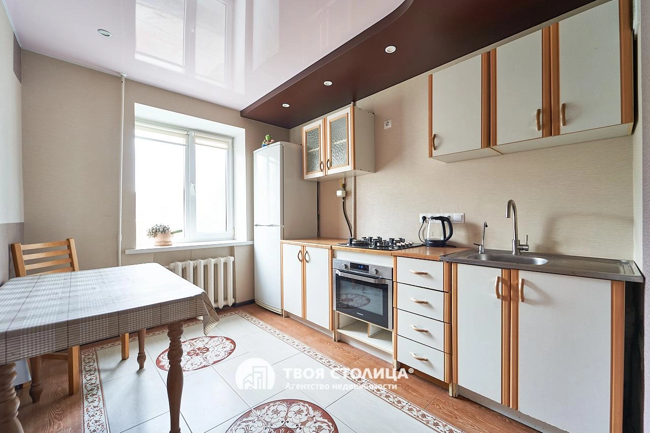 Квартира на четвёртом этаже девятиэтажного дома. Лоджия застеклена. Стеклопакеты. Полы- ламинат, плитка. Вместительный шкаф-купе. Натяжные потолки. Кухонная мебель. Бойлер. Металлическая входная дверь.