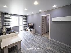 В квартире выполнен качественный ремонт: заменена проводка, залита новая стяжка, на полу уложен качественный ламинат, установлены натяжные потолки. Раздельный санузел облицован плиткой. Отлично организовано пространство для хранения вещей: в коридоре и комнате установлены шкафы-купе. Входная металлическая дверь.