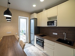 В квартире выполнен качественный ремонт: в оконных проёмах установлены стеклопакеты ПВХ, напольное покрытие ламинат, санузел облицован плиткой современного образца, входная дверь металлическая. Встроенная кухня с бытовой техникой.