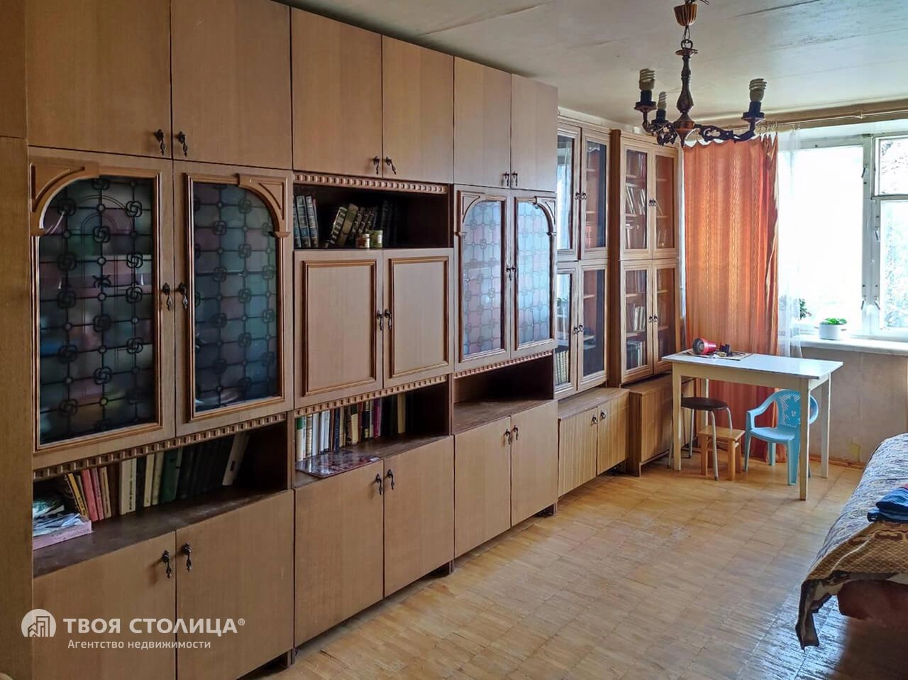 Состояние квартиры: жилое обычное без ремонта. Полы паркетные во всех комнатах и прихожей, в ванной и туалете на полу плитка, батареи наружные чугунные.
