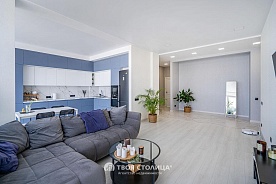 В квартире выполнен ремонт с применением качественных отделочных материалов. Французское остекление окон. Напольное покрытие: ламинат, плитка. Потолки со встроенными осветительными приборами.