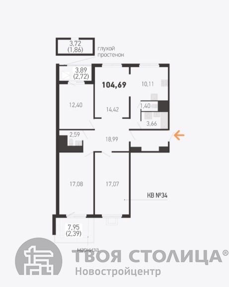 104.69 / 60.97 / м²