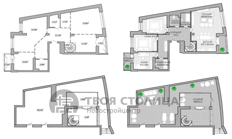 Четырехкомнатная квартира с террасой на крыше, 19 этаж, Диадема