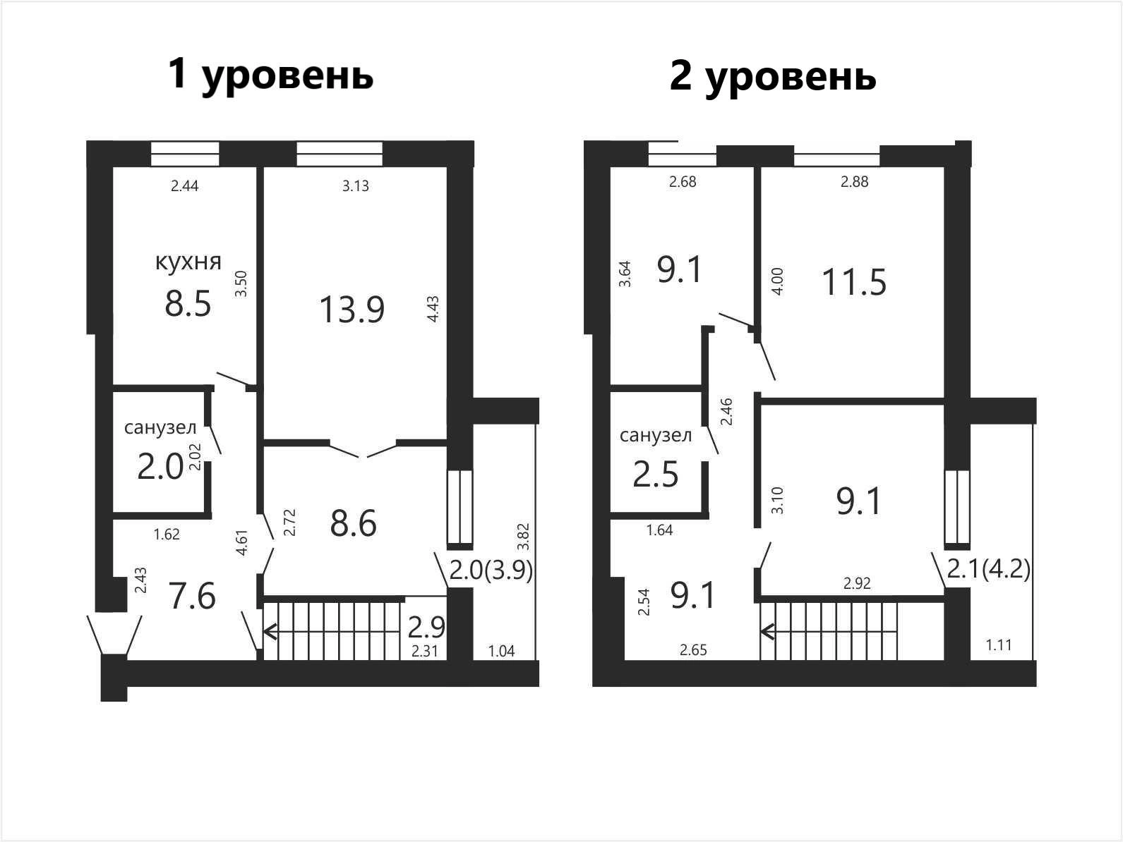 Общая площадь квартиры по СНБ 88.9 кв.м, общая 81.9 кв.м., жилая 52.2 кв.м., практичная планировка: кухня 8.5 кв.м., 2 санузла и 2 балкона, один из которых застеклен, изолированные комнаты (2 на первом уровне и 3 на втором).