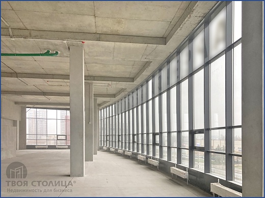 Административное помещение площадью 581 кв.м. без отделки (предоставляются арендные каникулы), планировочное решение - open space, высота потолков 5,74 м, глубина помещения 5м, панорамные окна обеспечивают высокий уровень инсоляции. Здание обслуживает 1 бесшумный лифт "OTIS".