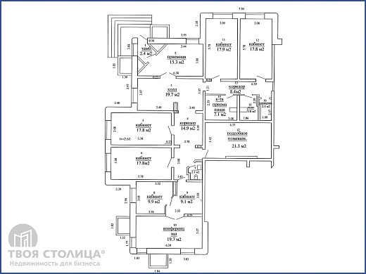 Общая площадь 207,3 кв.м, отдельный вход, кабинетная планировка (8 комнат), естественное освещение всех кабинетов, свой санузел, зона приема пищи.