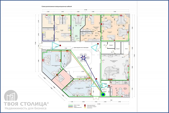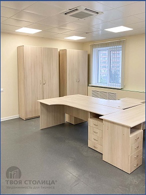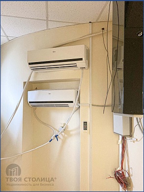 Изолированный блок площадью 286.7 кв.м., включает 14 комнат (все с естественным освещением), собственный коридор и зона ресепшена, блок санузлов, комната приема пищи с кухней (вода, канализация). Оборудованная кондиционерами серверная.