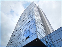 Панорамное остекление с видом на деловую застройку.