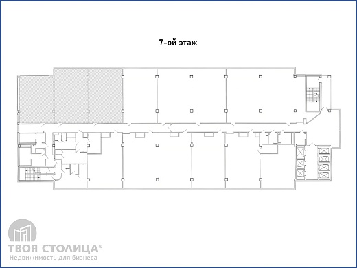 В аренду предлагаются офисы на 7-ом этаже, с отделкой, от 85 кв.м. до необходимого метража. Офисы высотой 3 метра с панорамным остеклением оборудованы современными системами кондиционирования и вентиляции.