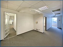 Изолированный административный блок (1 этаж жилого дома) площадью 271 кв.м, подсобные помещения, серверная, собственный коридор, есть возможность организации ресепшена, 2 блока санузлов, комната приема пищи с кухней (вода, канализация), с отделкой (косметика 2019 г).