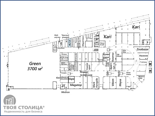 Торговое помещение площадью 46.7 кв.м. в торговом центре "Green Time".