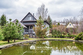На мансардном этаже просторная спальная зона 27 м.кв., из окон которой открывается прекрасный обзор на участок и пруд.