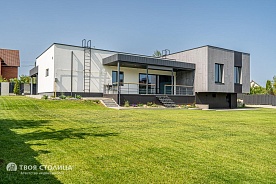 Стены выложены из керамического паризованного блока, вентилируемые фасады - фиброцементная плита производства Бельгии. В оконных проёмах и входной группе установлены стеклопакеты с алюминиевым профилем Schuco производство Германия. На террасу выведена вода, есть возможность организовать зону барбекю, а также установлены атоматические сетки, которые защищают от снега, дождя и насекомых.