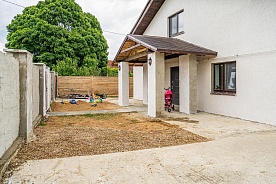 Крыша выполнена из металлочерепицы,фасад дома полностью оштукатурен.