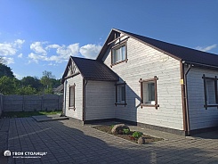 Новый дом в ближайшем пригороде. Материал стен бревно, вторая половина дома г/с блоки (утеплены). Обшит вагонкой. Свежий современный ремонт из качественных материалов, мебель. Встроенная кухня с бытовой техникой. Автономное отопление на газу. Подогрев пола в санузлах , в комнате с лестницей и котельной. Большой участок 24.98 с ограждением, мощением плиткой. Хорошие подъездные пути и транспортное сообщение со столицей. Инфраструктура в соседнем населенном пункте Вишневка. Прямая продажа.