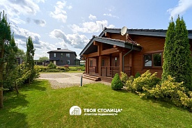 - просторный и светлый деревянный дом из профилированного бруса, который был построен в 2016 году. При устройстве кровли была использована немецкая черепица. Общая площадь 106 м.кв., из которых 67 м.кв. - жилая. Максимально рациональная и продуманная планировка: огромная гостиная со вторым светом и высотой потолка больше 6 метров, большая кухня, две отдельные комнаты, санузел 6.2 м.кв., топочная, кладовая-постирочная, прихожая, а также мансардный этаж, где оборудована детская комната. Здесь всё делалось для себя, поэтому ремонт выполнен максимально качественно, при этом использовались только дорогостоящие материалы: на полу уложена доска из массива лиственницы (древесина, которая характеризуется высокой устойчивостью к повышенной влажности и перепадам температур), а также итальянская плитка с подогревом. Европейские светильники и электрика, видеодомофон, деревянные стеклопакеты, входные двери из массива, камин и дубовая лестница. Встроенная кухня с фурнитурой Blum, которая полностью укомплектована необходимой техникой и столешницей из искусственного камня;