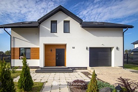 Новый жилой дом 160.4 кв.м. в городе Смолевичи рядом с коттеджным посёлком Lipki Village. Построен в 2017 году и включает в себя 2 уровня: