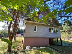 Участок 20 соток в частной собственности, огорожен по периметру. Двухэтажный бревенчатый дом обшитый сайдингом с мансардным и цокольным этажами общей площадью по СНБ 223.3 м кв. Дом введен в эксплуатацию в 2011 году. Кровля - шифер. Железобетонная кладовая и гараж.