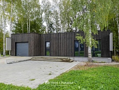 Материал стен состоит снаружи из цементных панелей, зашитной пленки, отделаны деревянной рейкой из лиственницы, внутри СИП панели(сэндвич панели), внутренняя отделка - гипсокартон.
