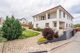 Огороженный земельный участок площадью 7,44 сотки находится в частной собственности. Сделан ландшафтный дизайн. Положена сетка от кротов, сделана ливнёвка и дренаж. Выведены точки для полива по всему участку, подсветка. Площадка для барбекю. Посажены плодовые деревья. Перед домом есть парковка на несколько машин. Облагорожена территория за забором: посажены деревья, сделан электрополив, баскетбольная площадка. Проложена дополнительная отдельная асфальтированная дорога к дому с парковкой и спортивной площадкой.