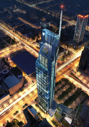 Новая офисная башня станет самым высоким зданием Польши и Евросоюза. Высота небоскреба со шпилем составит 310 метров, с которых он будет величаво поглядывать на железнодорожный вокзал. Проектировали комплекс британские и польские архитекторы, предусмотрев в нем 53 этажа и 140 тыс. «квадратов» коммерческой недвижимости A-класса. Помимо офисных площадей, в здании будут магазины, кафе и рестораны, а «фишкой» объекта станет смотровая площадка на крыше небоскреба. Когда комплекс достроят (а это произойдет не раньше 2020 года), он будет задавать тон на рынке бизнес-центров Варшавы.