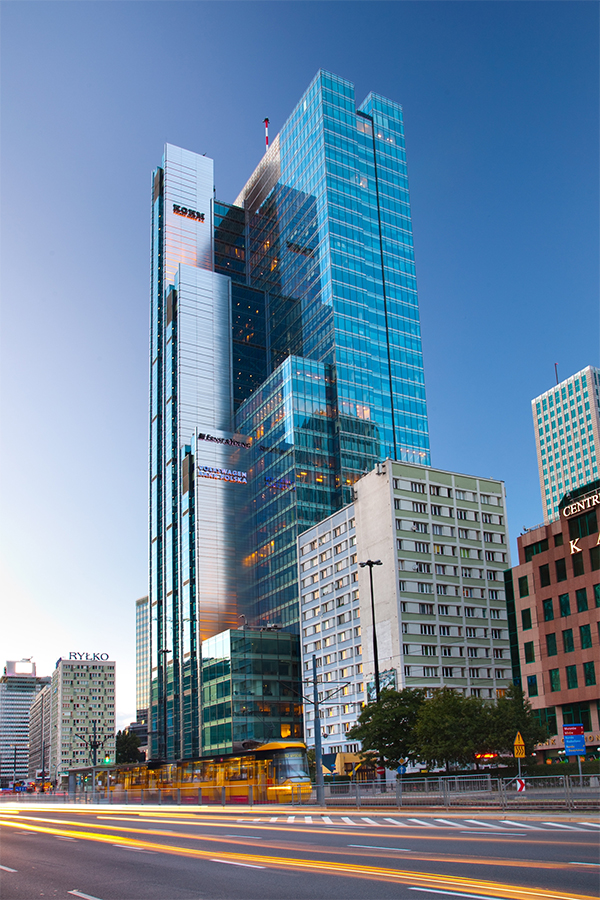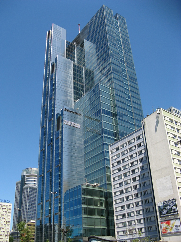 Офисный небоскреб с 11-летним стажем безоговорочно относят к объектам класса «А+». Здание в финансовом центре Варшавы включает в себя 41 этаж (с учетом высоких потолков это 194 метра) и состоит из двух частей: нижнюю облюбовали супермаркет, винный бар и кафе, тогда как верхнюю – многочисленные офисы, занимающие 64 тыс. кв.м. Комфорт в небоскребе создают мощные кондиционеры, скоростные лифты и зоны отдыха.